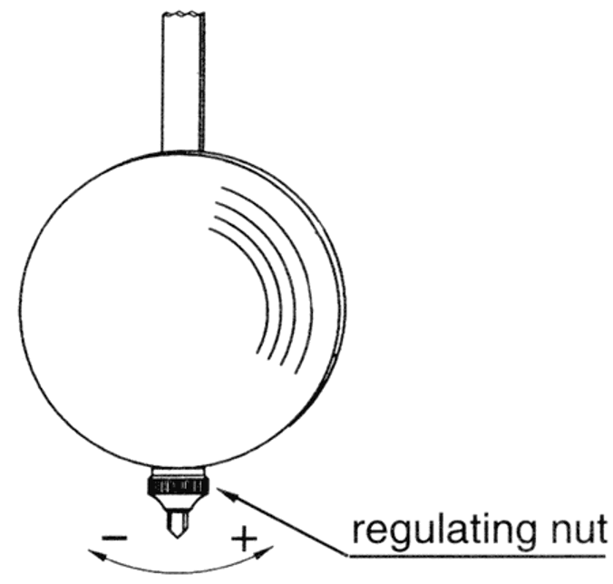One turn of the regulating nut changes the clock’s rate by approximately 1 minute per day. It is normal for a clock to run a few minutes fast or slow per week only one revolution of the nut in the appropriate direction and reset the hands to time each day until the clock is keeping adequate time.
